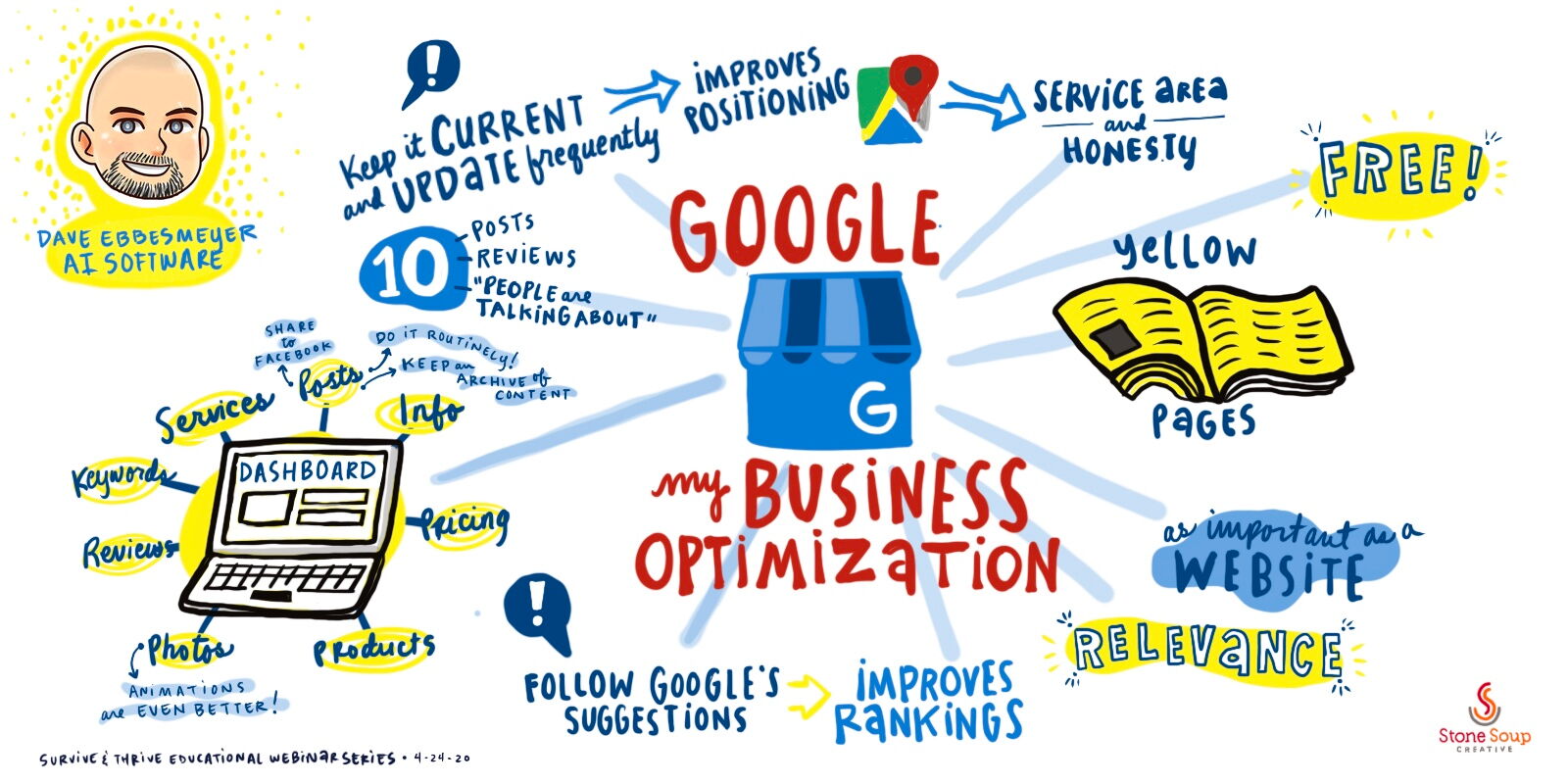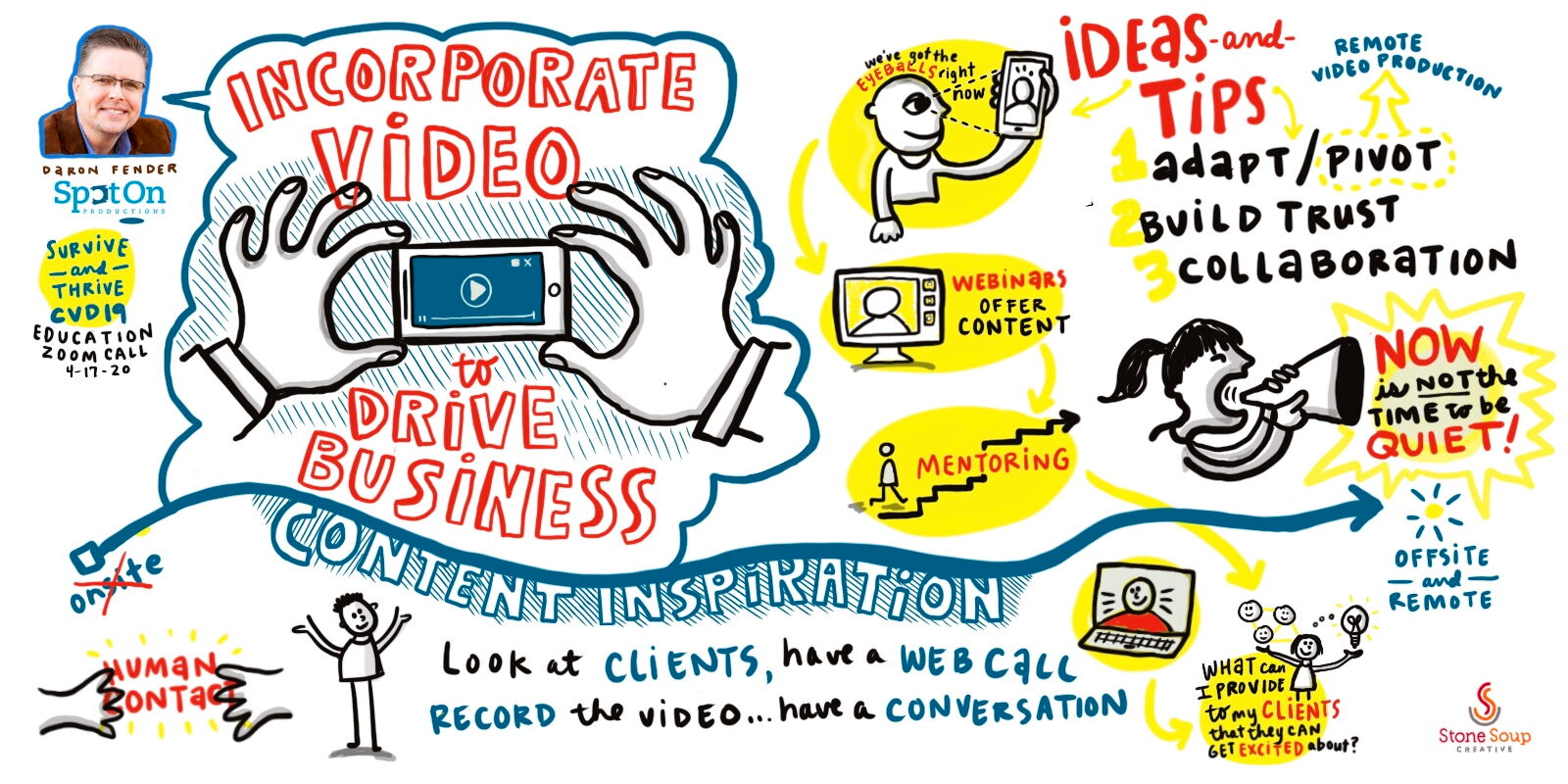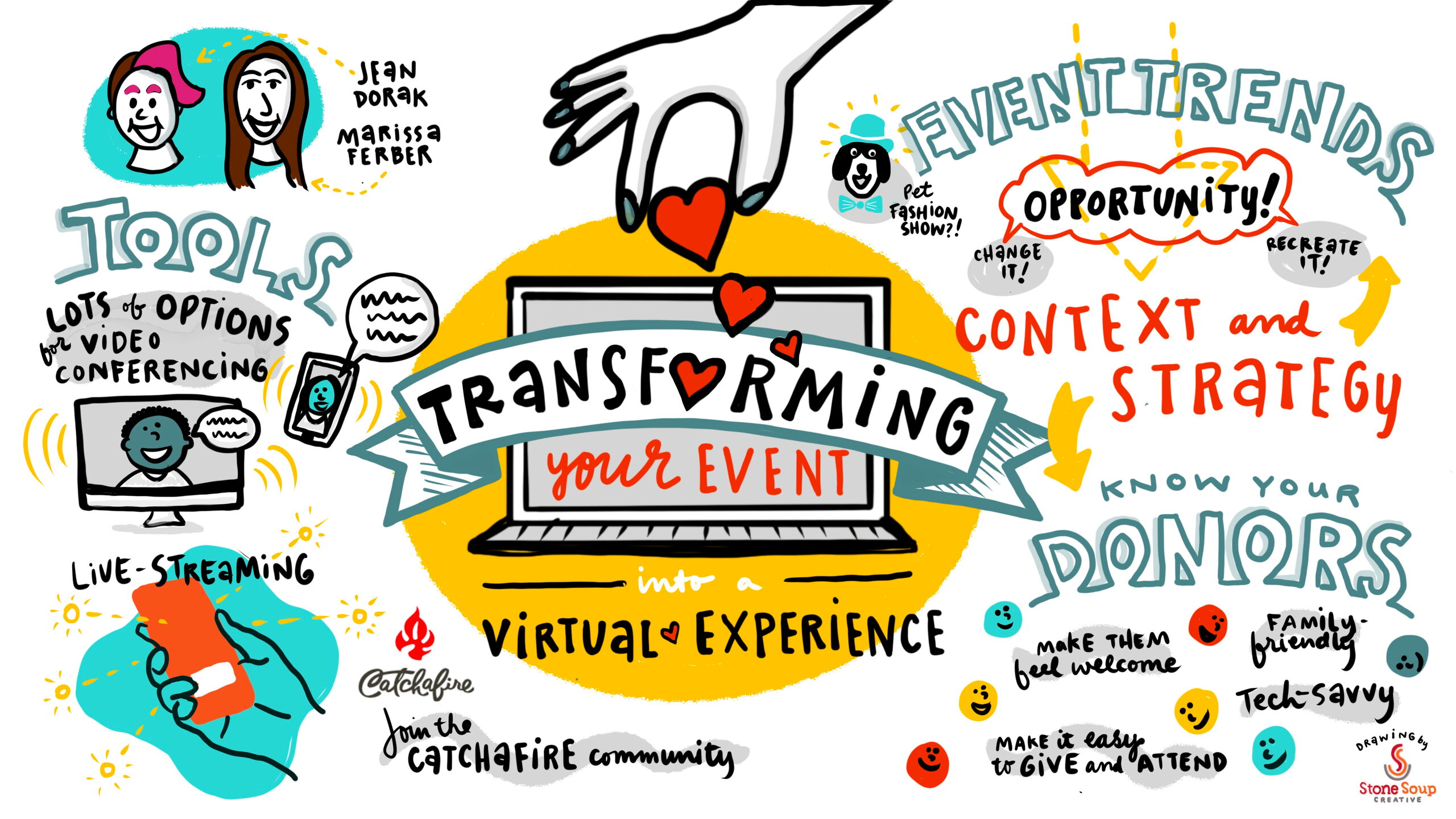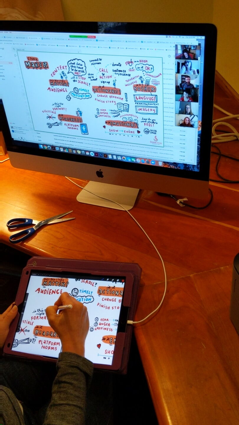 Julia Reich is the CEO (Chief Easel Officer) of creative consultancy Stone Soup Creative. She is a graphic recorder who draws live in real time at conferences, meetings, classes and other events. She does this either in-person on a large scale, using paper and markers; or virtually, drawing on her iPad during a remote meeting while participants watch her drawing of the discussion take shape. Julia makes conversations visible, helping drive discussions and decisions, and adds color to a normal and maybe less colorful day.