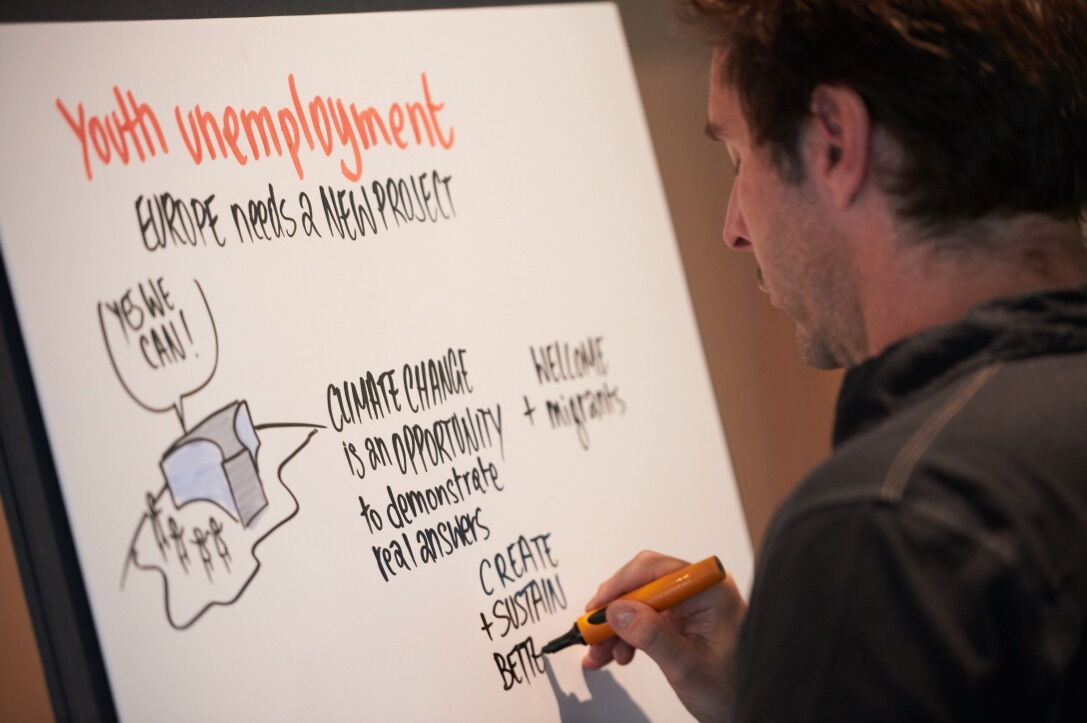 As a child I already knew it... I wanted to be an illustrator but somewhere along the way I ended up in the technology industry. A big part of my professional life I spent with Hewlett-Packard (HP) in various management and sales positions, until I bumped into the Envision team. The HP Envision team was a business transformation practice running visually facilitated strategy sessions for clients in the HP headquarters in Palo Alto, Silicon Valley. I joined that team and it changed my life. I spent 4 years facilitating in the HP headquarters and executive briefing centres in the Bay Area, New York, Plano and London, helping their major clients and account teams create visions and plans to transform their businesses.