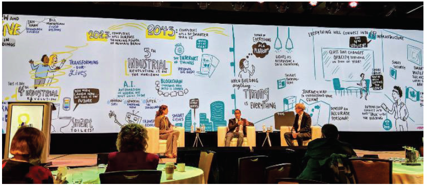 - Virtual graphic recording or digital graphic recording on super wide screens