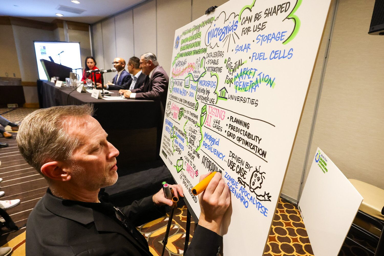 Trent specializes in the visual synthesis of presentations and dialogue in meetings. Across a diverse range of subjects, Trent’s visuals guide teams’ understanding, cohesion, and recall.